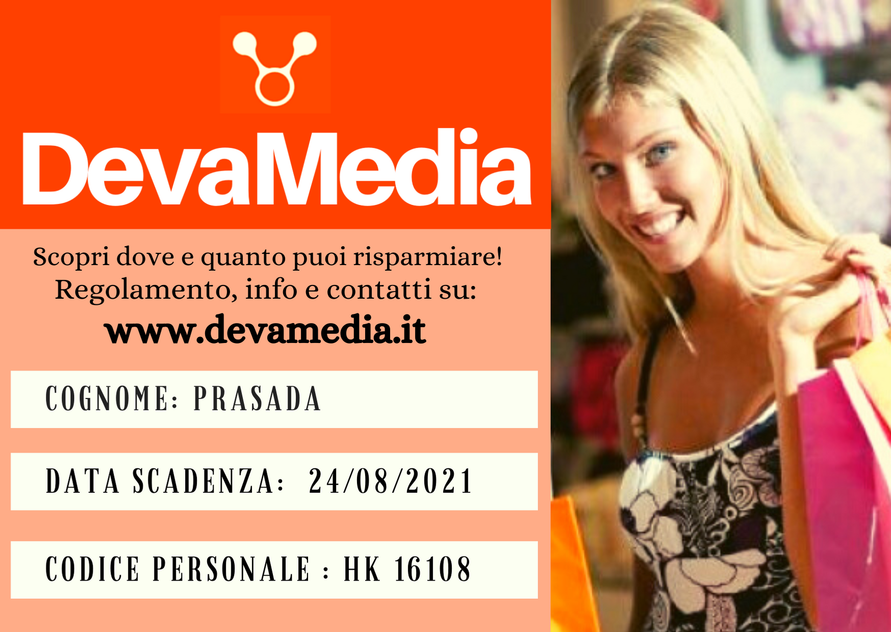 REGISTRAZIONE DEVACARD - CARTA SCONTO NOMINALE - VALIDA 12 MESI